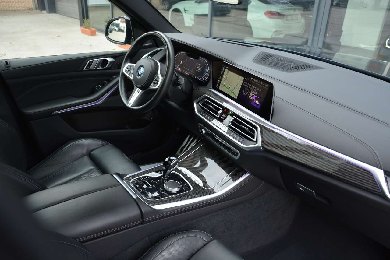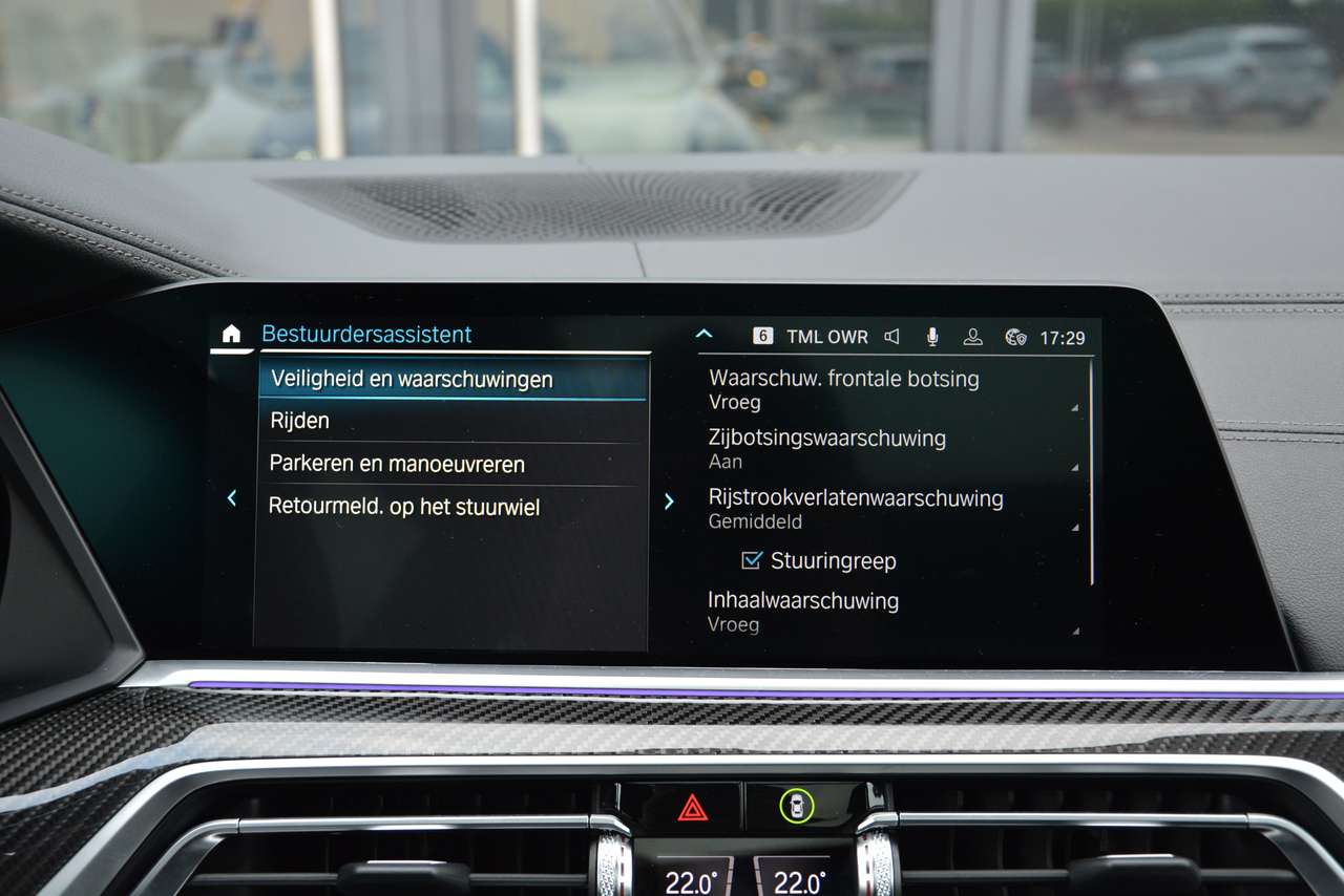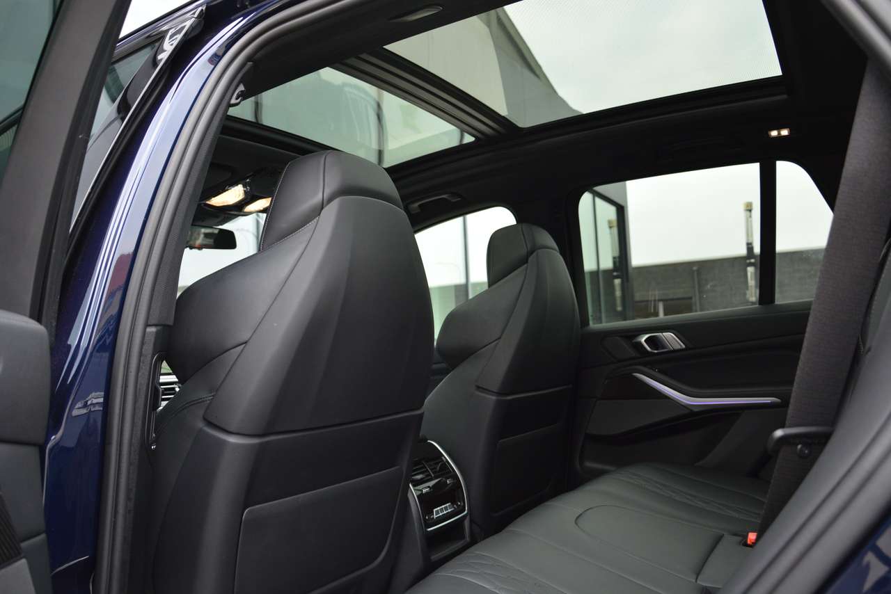 9N36501 Tansanitblauw metaalkleur M-Sport M-dakreling Shadowline Niveauregeling voor 2 assen Sfeerverlichting Sportrem Integrale actieve besturing Geluidsisolerende ruiten M Koplampen Shadowline Stoelventilatie voorstoelen Dashboard Sensatec M Stoelen met massagefunctie Grootlichtassistent Active Guard Plus Driving Assistant Professional PDC voor + achter + camera 360° Adaptive LASER koplampen Comforttoegang Electrisch inklapbare spiegels Head-up Display Multifunctioneel Sportstuur Verwarmd Stuur Adaptive Cruise Control BMW Live Cockpit Professional Apple/Android Carplay BMW Individual leder zwart Electrische M stoelen met geheugen Lendesteun Verwarmde zetels voor + achter Harman Kardon Sound System Panoramisch open dak Sky Lounge Getinte ruiten Automatische bediening van de achterklep Alu velgen 22"