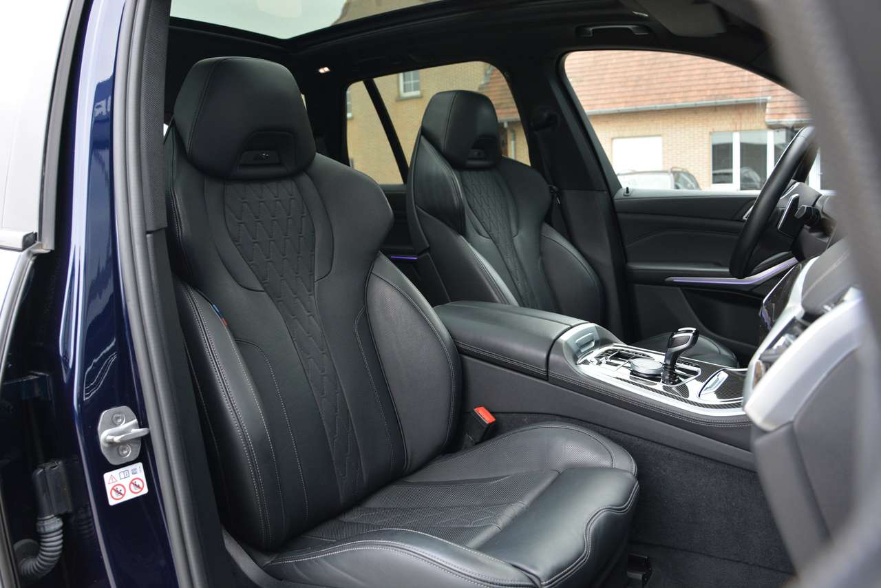 Tansanitbleu metallic M-Sport M-barres de Toit Shadowline Réglage niveau Eclairage d'ambiance Freins de Sport Vitres Isolées M Phares Shadowline Ventilation Sièges Avant Dashboard Sensatec Sièges M avec fontion Massage Assistant des grand Phares Active Guard Plus Driving Assistant Professional PDC avant + arrière + caméra 360° Phares Adaptive au LASER Accès Comfort Rétroviseurs rabattables électriques Head-up Display Volant Sport Multifunctions Volant Chauffants Régulateur de vitesse Adaptive BMW Live Cockpit Professional Apple/Android Carplay Cuir Noir BMW Individual Sièges M électriques avec mémoire Soutien Lombaire Sièges Chauffants avant + arrière Harman Kardon Sound System Toit Panoramique Sky Lounge Vitres Teintées Ouverture du coffre Automatique Jantes Alus 22"